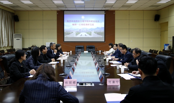 4月26日上午,西安文理學院黨委委員、宣傳部部長、科研處處長鮑鋒一行8人來校調研交流,座談會在雁塔校區(qū)會議中心第一會議室召開。副校長張榮軍出席會議,化學化工學院、電子工程學院負責人和科技處相關人員參加了會議。