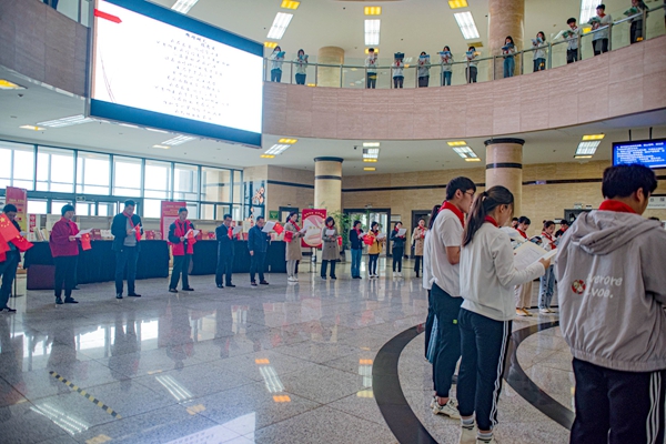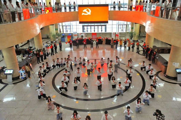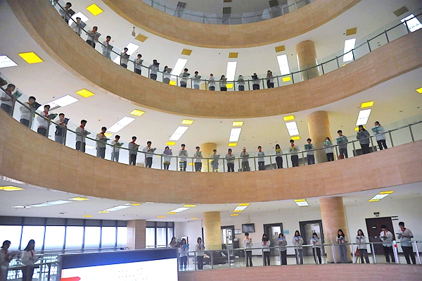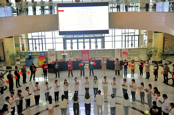 421日上午,在鄠邑校區(qū)墨香濃郁、書香四溢的圖書館大廳,以“銘記光輝歷史,創(chuàng)造美好未來”為主題的圖書館2021年校園文化活動(dòng)在師生共同參與的快閃活動(dòng)中拉開了帷幕。李華副校長,各職能部門負(fù)責(zé)人、各院系副書記,100余名同學(xué)們一起參加了啟動(dòng)儀式。