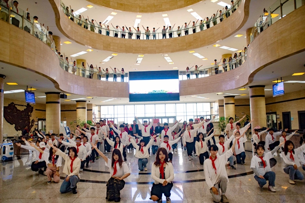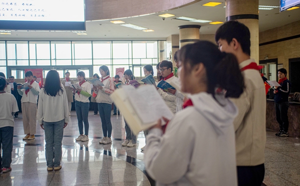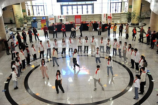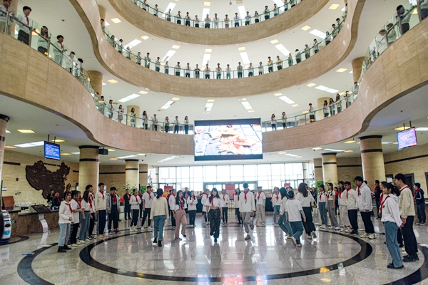 200名師生戴著紅領(lǐng)巾一起朗誦了《為學(xué)之道》、《沁園春·長沙》、《你是人間四月天》和《輝煌明天》四首詩歌?!稙閷W(xué)之道》強(qiáng)調(diào)了博學(xué)、審問、慎思、明辨和篤行,同學(xué)們明白了學(xué)習(xí)重在方法,貴在堅(jiān)持?!肚邎@春·長沙》抒發(fā)了革命青年對(duì)國家命運(yùn)的感慨,蔑視反動(dòng)統(tǒng)治者、改造舊中國的豪情壯志,同學(xué)們感受到以天下為己任的家國情懷?!赌闶侨碎g四月天》以景喻情,激發(fā)了同學(xué)們對(duì)生活的期待?!遁x煌明天》表達(dá)了學(xué)校支持國家發(fā)展、培育青年學(xué)子獻(xiàn)身石油的情懷和學(xué)校未來發(fā)展的美好愿望。