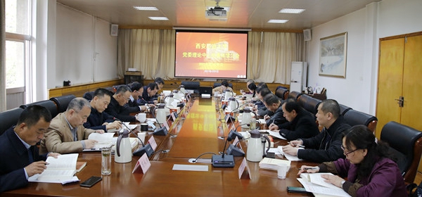 49日上午,校黨委理論學(xué)習(xí)中心組2021年第3次學(xué)習(xí)會在雁塔校區(qū)行政樓五樓會議室召開。與會人員集中學(xué)習(xí)了習(xí)近平同志《論中國共產(chǎn)黨歷史》和《中國共產(chǎn)黨簡史》等四本黨史學(xué)習(xí)教育指定書目的部分章節(jié),專題學(xué)習(xí)了習(xí)近平《論黨的宣傳思想工作》部分章節(jié),并結(jié)合各自工作實際和學(xué)習(xí)體會,圍繞黨的初心使命開展研討。黨委理論學(xué)習(xí)中心組成員參加會議,黨委書記賽云秀主持會議。