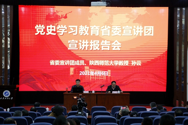 4月6日上午,黨史學習教育省委宣講團在我校雁塔校區(qū)舉行宣講報告會。省委宣講團成員、陜西師范大學教授孫云作宣講報告。報告會由校黨委書記賽云秀主持。校領導,全體處級干部、教師代表、師生代表參加了報告會。