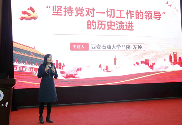 為深入學(xué)習(xí)貫徹習(xí)近平總書記在學(xué)校思想政治理論課教師座談會(huì)上的重要講話精神,促進(jìn)思政課程和課程思政有機(jī)融合,312日下午,我校在雁塔校區(qū)學(xué)術(shù)報(bào)告廳舉辦首場陜西省思政課“大練兵”獲獎(jiǎng)教師教學(xué)展示匯報(bào)活動(dòng)。校黨政領(lǐng)導(dǎo)賽云秀、張木、陳軍斌、程永清出席活動(dòng)。馬克思主義學(xué)院左玲、石少虎、程麗玥、鄭偉四位思政課大練兵獲獎(jiǎng)教師,相關(guān)職能處室負(fù)責(zé)人,理學(xué)院、外國語學(xué)院等5個(gè)院系負(fù)責(zé)人和教師代表參加。程永清主持本次教學(xué)展示活動(dòng)。