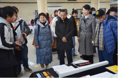 12月22日上午,人文學(xué)院2018級視覺傳達(dá)設(shè)計(jì)專業(yè)《包裝設(shè)計(jì)》課程創(chuàng)新、創(chuàng)業(yè)實(shí)踐作品展“國潮來襲/弄潮兒文創(chuàng)集市”的開幕式在西安石油大學(xué)鄠邑校區(qū)圖書館二樓大廳舉行。校黨委副書記張木出席,學(xué)生工作部(處)、創(chuàng)新創(chuàng)業(yè)中心、教務(wù)處、圖書館負(fù)責(zé)人,人文學(xué)院2018級視覺傳達(dá)設(shè)計(jì)專業(yè)學(xué)生參加了開幕式。