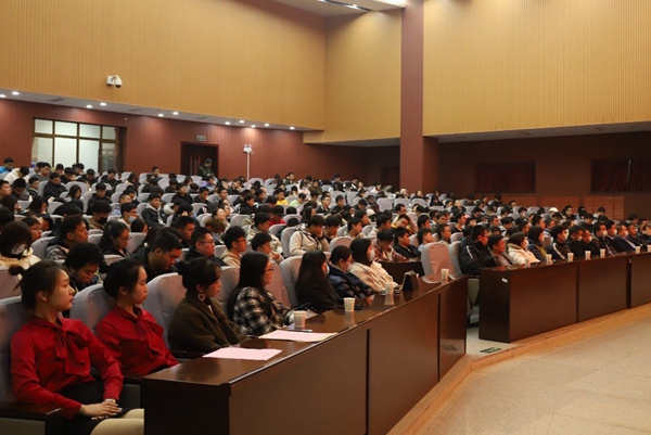 發(fā)放儀式結(jié)束后,何榮校友作了一場精彩的報告。他結(jié)合自己的求學(xué)經(jīng)歷和干事創(chuàng)業(yè)的個人感悟,給同學(xué)們分享了他對成功與幸福的認識。他勉勵同學(xué)們要珍惜大學(xué)時光,努力學(xué)習(xí),在學(xué)習(xí)中感受幸福。報告會氣氛熱烈、內(nèi)容豐富,報告中旁征博引、深入淺出,廣大同學(xué)們受益匪淺。