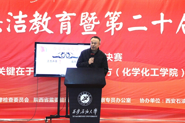1127日晚,“清正廉潔、筑夢同行”廉潔教育暨西安石油大學(xué)第二十屆“智者杯”大學(xué)生辯論賽決賽在鄠邑校區(qū)騰輝大學(xué)生活動中心舉行。校黨委副書記、紀(jì)委書記、陜西省監(jiān)委駐校監(jiān)察專員李延平出席比賽。相關(guān)部門、學(xué)院負責(zé)人觀摩比賽。馬克思主義學(xué)院九位教師擔(dān)任辯論賽評委。