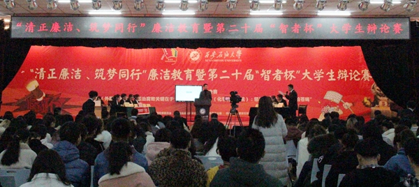 “智者杯”大學(xué)生辯論賽是我校校園文化建設(shè)的精品項目,曾獲得陜西省高校校園文化建設(shè)優(yōu)秀成果一等獎,是我校思政課實踐教學(xué)的重要組成部分。從1026日開賽以來,第二十屆“智者杯”大學(xué)生辯論賽先后開展了資格賽、初賽、半決賽、決賽。全校十三個院系均派代表隊參加。賽事的前半段主要由馬克思主義學(xué)院和教務(wù)處主辦,由宣傳部、學(xué)生處、鄠邑校區(qū)管理辦公室、校團委協(xié)辦。“清正廉潔、筑夢同行”廉潔教育和“智者杯”辯論賽決賽由校紀(jì)委、陜西省監(jiān)委駐西安石油大學(xué)監(jiān)察專員辦公室主辦,馬克思主義學(xué)院和教務(wù)處協(xié)辦。
