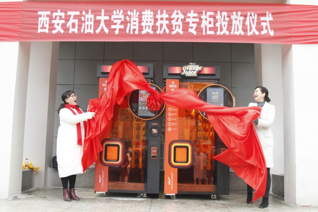 儀式上,校工會(huì)主席袁玎致辭。她談到,2020年是全面建成小康社會(huì)目標(biāo)實(shí)現(xiàn)之年,也是脫貧攻堅(jiān)決戰(zhàn)決勝、全面收官之年。此次貫徹落實(shí)陜西省委教育工委扶貧專柜進(jìn)高校的工作要求,我校黨委高度重視,校黨委副書記雷西合親自安排部署前期工作,國資處、后勤處等部門給予了大力支持,我校與上海巨昂科技有限公司達(dá)成合作協(xié)議,確保雁塔校區(qū)扶貧專柜順利投放落地。