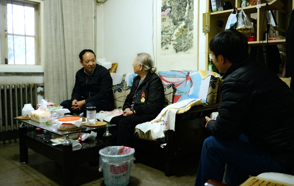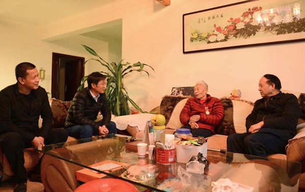 賽書記一行分別來到三位抗美援朝志愿軍老戰(zhàn)士董玉田、鄭承蘭、王世達(dá)家中,轉(zhuǎn)達(dá)黨中央的關(guān)懷和全校師生的祝福,并為他們佩戴無上光榮的“中國人民志愿軍抗美援朝出國作戰(zhàn)70周年”紀(jì)念章。每到一處,賽書記親切詢問他們的身體健康狀況、家庭生活情況,傾聽他們講述當(dāng)年抗美援朝的戰(zhàn)斗故事,對老戰(zhàn)士在抗美援朝戰(zhàn)爭中敢于斗爭不怕犧牲的精神致以最崇高的敬意,并祝愿他們生活幸福、健康長壽。