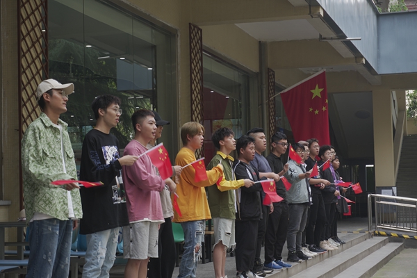 中午1210分,音樂系100余名師生匯聚到雁塔校區(qū)學生餐廳門外。隨著《歌唱祖國》音樂旋律響起,大家一邊揮舞著手中的五星紅旗,一邊唱起《今天是你的生日》《輝煌明天》《我愛你中國》三首歌曲。三首歌曲慷慨激昂、振奮人心,表達了我校師生對祖國的崇敬和熱愛之情,展示了我校師生積極向上的精神風貌。師生們通過“快閃”這樣的新穎形式,唱響了熱愛黨、熱愛祖國、熱愛學校、熱愛生活的主旋律,令人耳目一新,贏得了在場師生的陣陣掌聲。