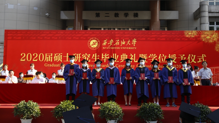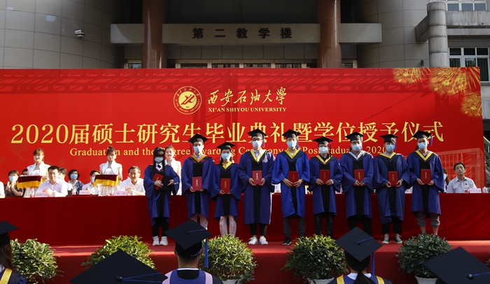 副校長(zhǎng)李華宣讀了學(xué)校《西安石油大學(xué)關(guān)于授予常耀恒等918名研究生碩士的決定》《西安石油大學(xué)關(guān)于表彰2020年優(yōu)秀碩士學(xué)位論文作者及指導(dǎo)教師的決定》。校黨委副書記張木宣讀了學(xué)校《西安石油大學(xué)關(guān)于表彰2020屆優(yōu)秀畢業(yè)生的決定》《西安石油大學(xué)校友總會(huì)關(guān)于聘任2020屆年級(jí)校友理事的決定》。校領(lǐng)導(dǎo)為優(yōu)秀畢業(yè)生、校友理事代表頒發(fā)證書、聘書。