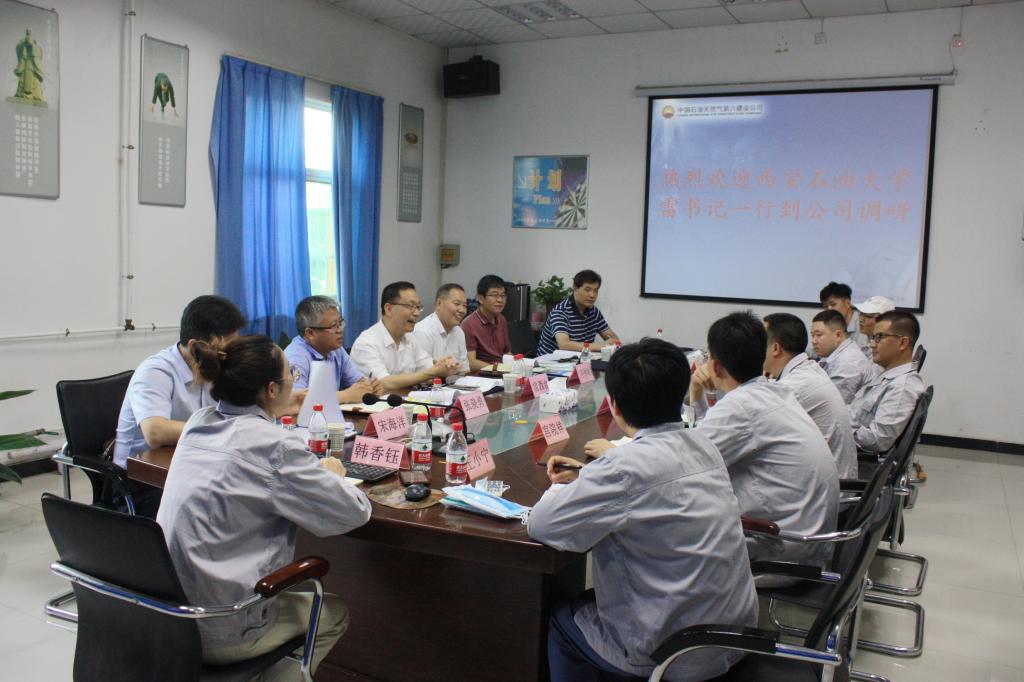 卿勇副總經(jīng)理代表公司對雷西合副書記一行來訪表示歡迎,對學(xué)校多年來對第六建設(shè)公司各方面的支持表示感謝。他結(jié)合公司宣傳片介紹了公司50多年來的發(fā)展歷程和取得的輝煌成就,對我校畢業(yè)生在公司的良好表現(xiàn)及為公司發(fā)展所做出的突出貢獻(xiàn)給予了高度評價,希望與學(xué)校保持良好關(guān)系并開展更深入合作,并承諾盡可能多接收西安石油大學(xué)畢業(yè)生到公司工作。