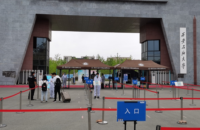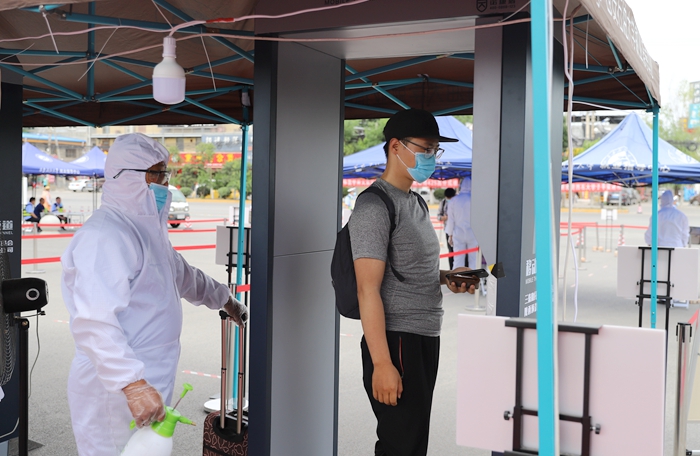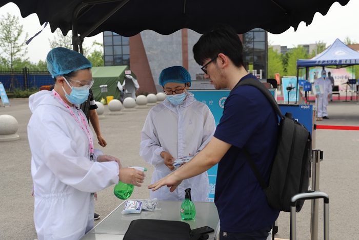 返校當天,所有同學在現(xiàn)場工作人員的指引下,依次有序完成了更換口罩、測量體溫、行李消毒、健康碼核查、身份核實等流程。
