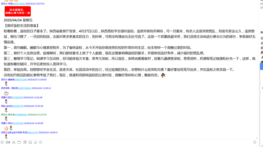 撰寫“兩封書(shū)信”,傾情守護(hù)凝心聚力。1月31日,學(xué)校發(fā)出《給湖北籍西石大學(xué)子的一封信》,向身處疫區(qū)中心的學(xué)生送去母校的牽掛與撫慰,與湖北籍學(xué)生及家人一起抗疫。2月6日,發(fā)布《給陜西高校班級(jí)心理委員的倡議書(shū)》,并通過(guò)陜西省委教育工作委員會(huì)轉(zhuǎn)發(fā)全省各高校,鼓勵(lì)廣大學(xué)生骨干充分發(fā)揮朋輩優(yōu)勢(shì),攜手互助,建立戰(zhàn)“疫”情境中的心理互助,在國(guó)家危機(jī)時(shí)洋溢青春的力量。