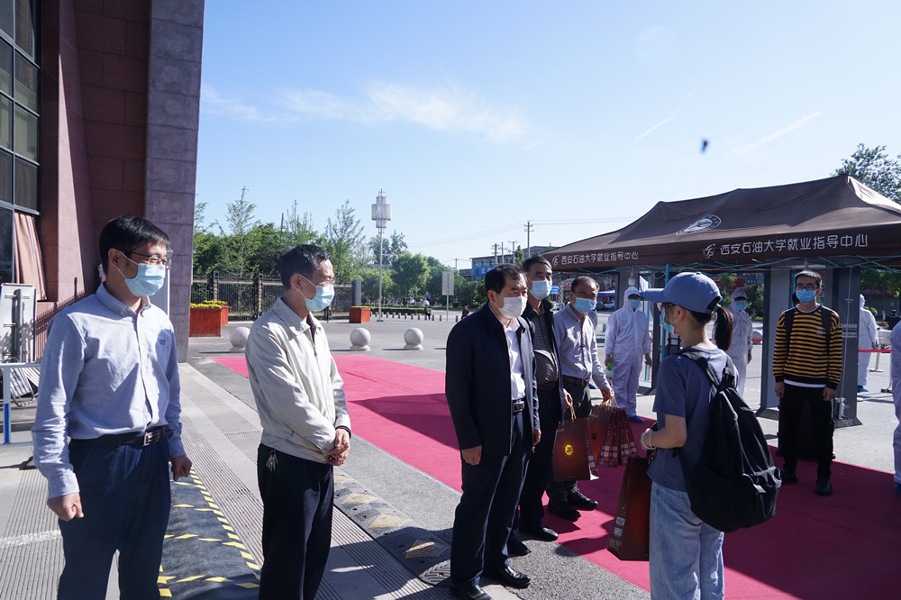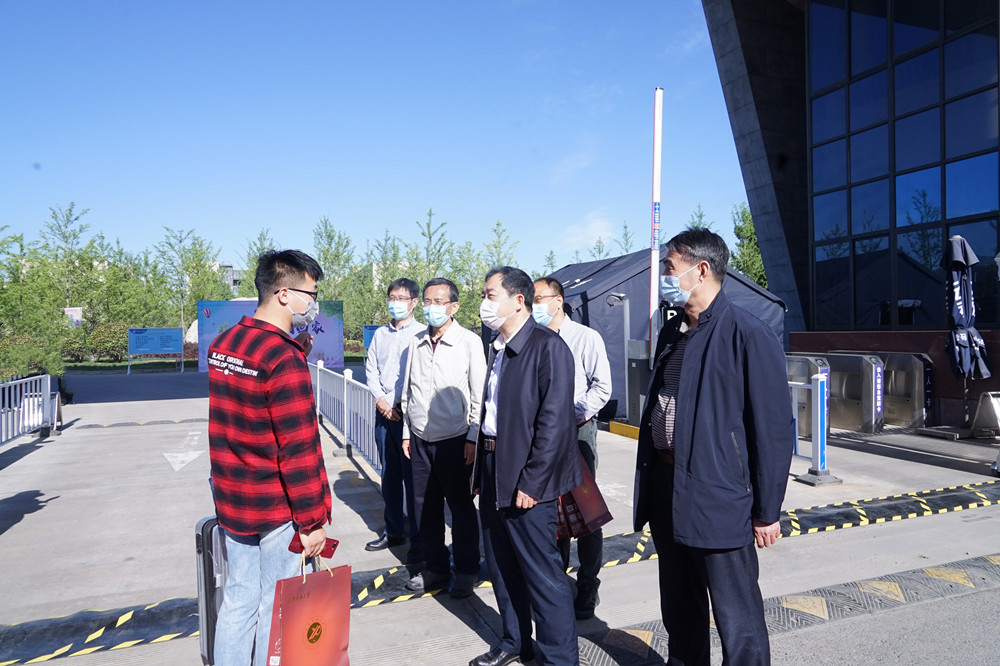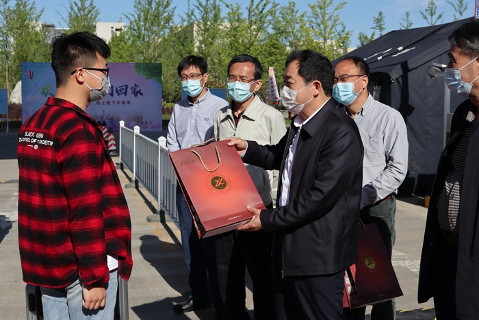 上午8點,校長李天太、校黨委副書記張木、副校長蘇文甫及相關(guān)部門負責人在鄠邑校區(qū)東大門迎接返校同學歸來。李天太校長為率先返校的9名同學送上健康禮包,詳細了解大家的假期生活、線上學習、畢業(yè)設(shè)計(論文)進展、就業(yè)考研等情況,并提醒大家返校后繼續(xù)注意科學防護、理性應對,以最好的狀態(tài)迎接校園生活的到來。
