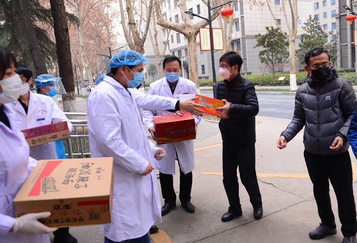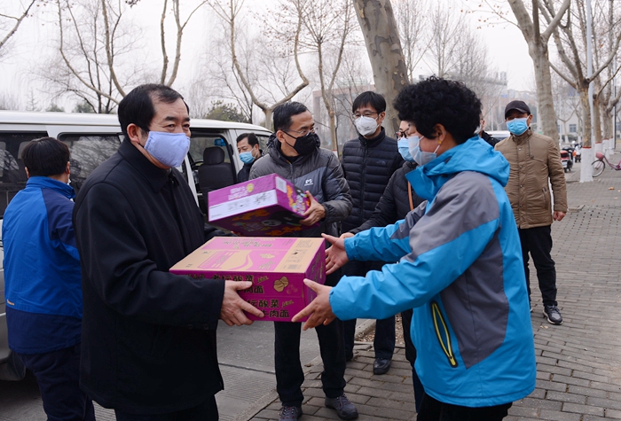 2月1日下午,學(xué)校疫情防控工作領(lǐng)導(dǎo)小組組長(zhǎng)、校長(zhǎng)李天太,領(lǐng)導(dǎo)小組副組長(zhǎng)、校黨委副書記張木,領(lǐng)導(dǎo)小組副組長(zhǎng)、副校長(zhǎng)蘇文甫在黨委組織部、紀(jì)委監(jiān)察處、保衛(wèi)處、后勤管理處等部門負(fù)責(zé)人陪同下,看望慰問(wèn)了疫情防控一線的工作人員。