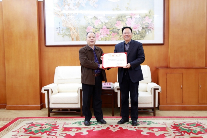 聘任儀式上,陳軍斌副校長為劉玉強教授頒發(fā)了兼職教授聘書,并代表學校對劉玉強教授受聘為我校兼職教授表示熱烈歡迎。陳軍斌副校長向劉玉強教授介紹了近年來我校地球科學與工程學院在教育教學、人才培養(yǎng)、學科建設(shè)等方面取得的成績以及今后努力的方向。