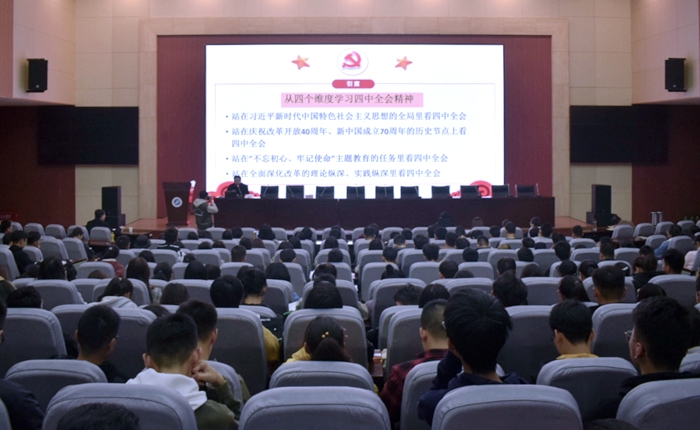 報告人最后強調,大家要根據(jù)關于學習貫徹落實黨的十九屆四中全會精神的通知要求,結合“不忘初心、牢記使命”主題教育,開展黨的十九屆四中全會精神專題研討,加深理解并化為自覺行動,推動十九屆四中全會精神入腦入心。