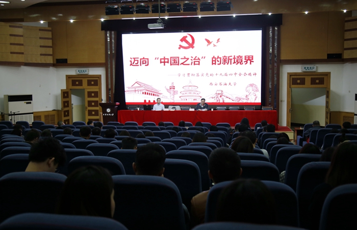 聆聽報告后,我校師生紛紛暢談了學習四中全會精神的心得體會。石油工程學院黨委書記馬勇表示,黨的十九屆四中全會是在新中國成立70周年、深入開展第二批“不忘初心、牢記使命”主題教育和全面深化改革的背景下召開的,意義重大而深遠。石油工程學院全體教職工將深入學習四中全會精神,不忘立德樹人初心,牢記能源強國使命,努力培養(yǎng)更多學石油、愛石油的合格建設者和可靠接班人。