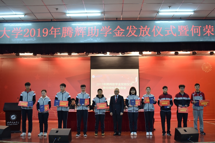 發(fā)放儀式上,學生工作處處長趙健介紹了騰輝助學金的設立情況,合作發(fā)展處處長蔡上游向何榮校友頒發(fā)了捐贈證書,何榮校友向受助學生代表發(fā)放了助學金并贈送圖書《從偶然到必然》,機械工程學院機械卓越1701班胡啟超同學發(fā)言。
