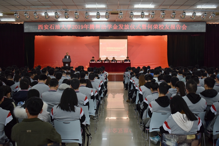 11月20日下午,2019年騰輝助學金發(fā)放儀式暨何榮校友報告會在鄠邑校區(qū)騰輝大學生活動中心舉行。校黨委副書記張木,西安騰輝電氣有限公司總經(jīng)理、“騰輝助學金”主要出資人、我校校友何榮出席儀式。學生工作處、合作發(fā)展處、機械工程學院負責人,2019年騰輝助學金獲得者,西安騰輝電氣有限公司員工代表,以及各院系師生代表共500余人參加了活動。