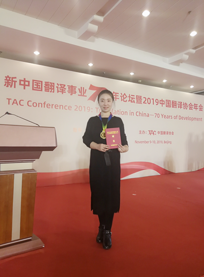 近日,外國(guó)語(yǔ)學(xué)院法語(yǔ)教師吉玲在第31屆韓素音國(guó)際翻譯大賽中榮獲漢譯法一等獎(jiǎng),并受邀赴北京參加頒獎(jiǎng)典禮和2019年中國(guó)翻譯協(xié)會(huì)年會(huì)。