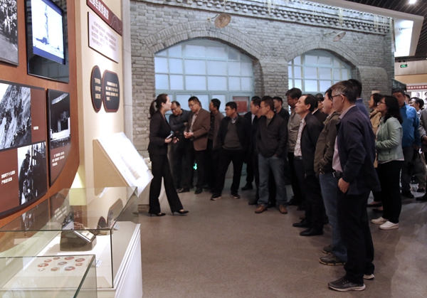 校領(lǐng)導(dǎo)一行首先在長慶油田公司副總經(jīng)理付金華的陪同下,參觀了長慶油田展覽館。同時,我校100多名處級干部分兩批參觀了展覽館,并開展了石油精神現(xiàn)場教育教學(xué)。展覽館布展面積約為4200平方米,分為“創(chuàng)業(yè)廳、發(fā)展廳、創(chuàng)新廳、未來廳”四個大廳,館內(nèi)有近千幅歷史圖片、數(shù)十件實物、數(shù)百個視頻窗口、體驗式觸摸操控系統(tǒng)、發(fā)光地圖、大型弧幕影廳等。展覽館通過現(xiàn)代的聲光電技術(shù),生動再現(xiàn)了石油工人艱苦創(chuàng)業(yè)的場景,立體呈現(xiàn)了一幅長慶油田近50年“磨刀石上鬧革命,低滲透中鑄豐碑”的動態(tài)畫卷。通過參觀長慶油田展覽館,我校黨員干部接受了實實在在的石油精神教育,進一步牢記初心使命、堅定責任擔當,努力將主題教育中激發(fā)出的愛國熱情轉(zhuǎn)化為發(fā)奮工作的實際行動,為高水平大學(xué)建設(shè)工作貢獻力量。