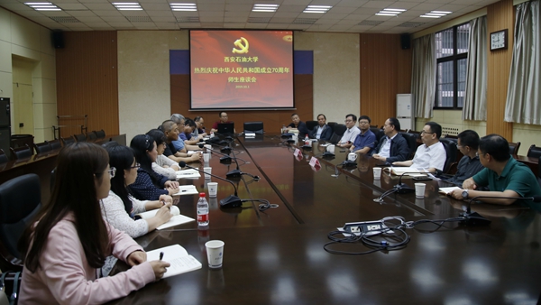 賽云秀書記在座談會上發(fā)表了熱情洋溢的講話。他說,70年櫛風沐雨,70年接續(xù)奮斗,新中國在中國共產(chǎn)黨的領導下,取得了舉世矚目的成就,鑄造了無比燦爛的輝煌。伴隨著新中國的腳步,我們西安石油大學在黨的教育方針指引下,一路探索、一路前行,同樣取得了巨大的成就。這個成就是來之不易的,是幾代西石大人歷經(jīng)坎坷、艱苦奮斗的結(jié)果,是全體師生默默耕耘、無私奉獻的結(jié)果。