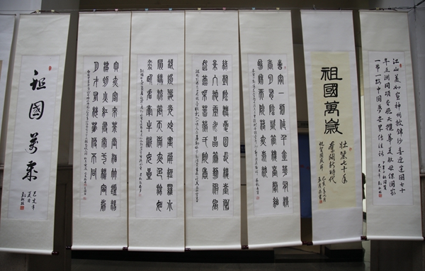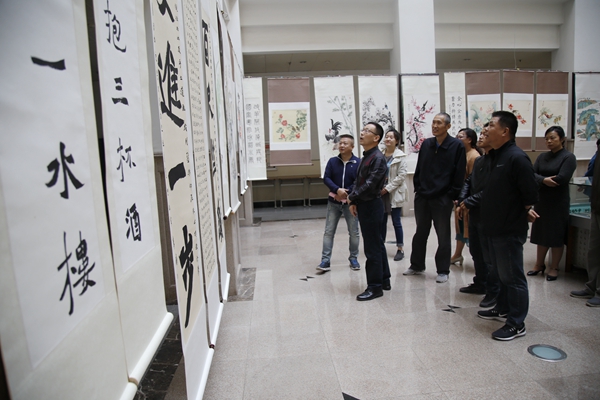 此次展覽匯集了我校10余名書(shū)畫(huà)愛(ài)好者精心創(chuàng)作的60余幅書(shū)畫(huà)作品。創(chuàng)作者以手中的畫(huà)筆熱情贊頌偉大祖國(guó)的光輝成就,真情書(shū)寫(xiě)新中國(guó)成立70年的偉大歷程。觀眾也被一幅幅精美的書(shū)畫(huà)作品深深吸引,一起祝福偉大祖國(guó)繁榮昌盛。