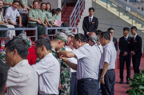 典禮上,陳軍斌副校長(zhǎng)宣讀了《西安石油大學(xué)關(guān)于表彰2019級(jí)高國(guó)慶等225名本科新生獎(jiǎng)學(xué)金獲得者的決定》,校領(lǐng)導(dǎo)為獲獎(jiǎng)學(xué)生代表頒發(fā)了證書。同時(shí),為了增強(qiáng)學(xué)生的歸屬感和愛(ài)校榮校的意識(shí),此次開學(xué)典禮還特意舉行了新生校徽佩戴儀式,由校領(lǐng)導(dǎo)為2019級(jí)新生代表授予?;?。