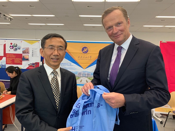 5月31日,奧地利“留學(xué)中國(guó)”教育展開幕,各院校代表及中奧觀眾百余人參加開幕式。參展期間,張木副書記一行訪問了維也納應(yīng)用技術(shù)大學(xué),并與該校校長(zhǎng)Andreas Breinbauer先生、中國(guó)駐奧地利大使館教育處負(fù)責(zé)人周志強(qiáng)教授等進(jìn)行了交流。6月1日,訪問團(tuán)一行參觀訪問了奧地利維也納大學(xué)。