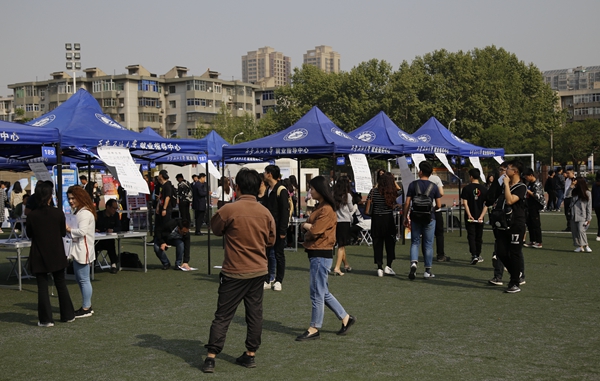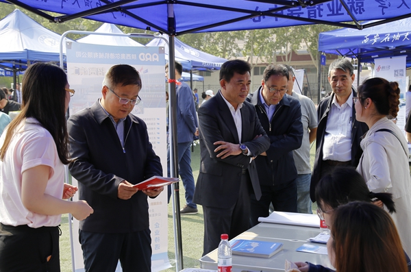 4月19日,陜西省高校2019屆少數(shù)民族畢業(yè)生聯(lián)盟招聘會在我校雁塔校區(qū)體育場舉行。此次招聘會由省教育廳和省國資委主辦,省高校學(xué)生就業(yè)指導(dǎo)中心和我校共同承辦。省委教育工委副書記李智軍、省教育廳副廳長王紫貴到招聘會現(xiàn)場考察指導(dǎo)工作。我校黨委副書記張木、副校長蘇文甫,省教育廳學(xué)生處、高校學(xué)生就業(yè)指導(dǎo)中心有關(guān)負(fù)責(zé)人陪同考察。來自全國各地220余家單位的400余名招聘代表、全省高校2000余人次畢業(yè)生參加了招聘會。
