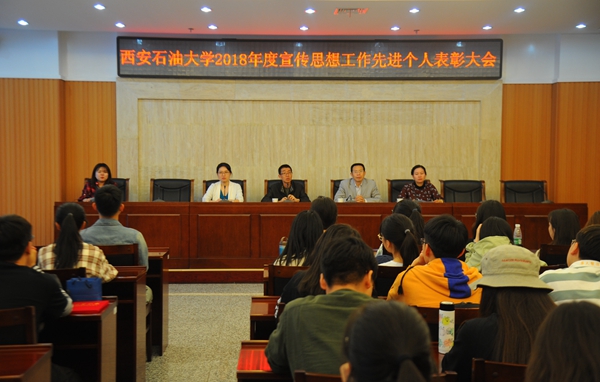 4月17日中午,我校在鄠邑校區(qū)圖書館第一會(huì)議室召開了2018年度宣傳思想工作學(xué)生先進(jìn)個(gè)人表彰大會(huì)暨大學(xué)生新聞社社長聘任儀式。校黨委委員、宣傳部部長李國武,相關(guān)工作人員及大學(xué)生新聞社的60余名同學(xué)參加了會(huì)議。