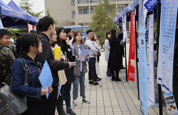 3月29日,我校2019屆畢業(yè)生第三場(chǎng)綜合招聘會(huì)在鄠邑校區(qū)圖書館北廣場(chǎng)舉辦。中國(guó)石油集團(tuán)渤海鉆探工程有限公司泥漿技術(shù)服務(wù)分公司、中石油華東設(shè)計(jì)院有限公司、中國(guó)石油運(yùn)輸有限公司、陜西延長(zhǎng)石油材料有限責(zé)任公司、陜西省高速公路建設(shè)集團(tuán)公司等450家單位、1000余名招聘代表參會(huì),我校及兄弟院校畢業(yè)生共計(jì)4000余人參會(huì)。就業(yè)指導(dǎo)中心及各院(系)負(fù)責(zé)人深入招聘會(huì)一線指導(dǎo)推薦畢業(yè)生就業(yè)。