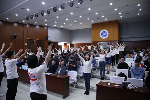 全體參會師生進行了第四屆“陽光護航”宣傳季活動宣誓。應用心理學輔修專業(yè)同學表演了配樂詩朗誦《如果你愛我》,師生共同演繹了手語舞《讓愛傳出去》。