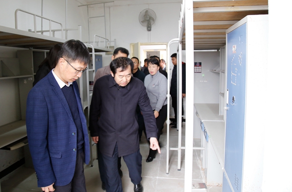 會(huì)前,李天太校長(zhǎng)、蘇文甫副校長(zhǎng)一行還到鄠邑校區(qū)教學(xué)樓B區(qū)、學(xué)生公寓7號(hào)樓、C2實(shí)驗(yàn)樓等處實(shí)地調(diào)研,逐一了解實(shí)際問題,商討解決方案。