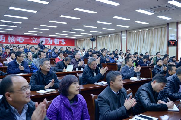12月7日, “時代楷?!薄ⅰ叭珖鴰煹聵?biāo)兵”、“全國優(yōu)秀教師”曲建武教授應(yīng)邀來校作《做大學(xué)生人生成長的指導(dǎo)者和引路人》專題報告。報告會由黨委宣傳部和學(xué)工部共同組織,校黨委副書記張木主持,全校各院系書記、副書記、輔導(dǎo)員,學(xué)生工作部、校團(tuán)委全體工作人員和馬克思主義學(xué)院教師參加了報告會。