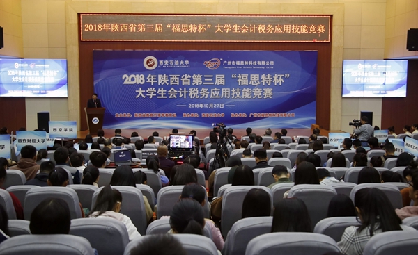 10月27日,由陜西省教育廳高等教育處主辦、西安石油大學(xué)承辦、廣州市福思特科技有限公司提供技術(shù)支持的2018年陜西省第三屆“福思特杯”大學(xué)生會計應(yīng)用技能競賽暨“貫徹黨的十九大精神,推進財稅技能精準(zhǔn)改革”研討會在鄠邑校區(qū)舉辦。陜西省財政廳副巡視員王素文,陜西省教育廳高等教育處趙登攀,西安石油大學(xué)副校長楊戰(zhàn)社,西安交通大學(xué)管理學(xué)院會計與財務(wù)系主任田高良,陜西財經(jīng)職業(yè)技術(shù)學(xué)院副校長范忠,廣州市福思特科技有限公司董事長閆曉霞等出席比賽開幕式。我校實驗室管理處處長孟開元主持開幕式。
