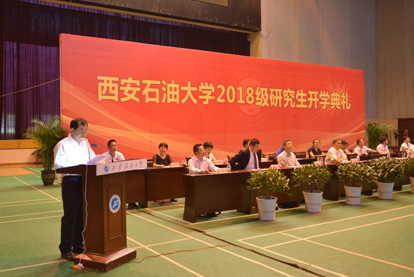 李天太校長在致辭中向新入校的全體研究生表示歡迎,并與新入學(xué)研究生一起分享了67年來西石大歷屆優(yōu)秀校友在奮斗與實踐中譜寫的精彩華章。在新的起點上,李校長向同學(xué)們提出了五點要求和希望。一是要志存高遠,胸懷家國天下,努力成為有思想、有溫度、有品質(zhì)、有家國情懷的科研工作者。二是要勇于創(chuàng)新,不負青春韶華,珍惜時光,勤勉學(xué)習(xí),爭取在研究生期間做到“3個50”(即讀50本書、認(rèn)識50位老師、參加50場活動),爭取早日產(chǎn)出創(chuàng)新性的科研成果。三是要激發(fā)興趣,快樂從事科研,體驗解決困難問題的興奮,享受對認(rèn)定后的學(xué)術(shù)研究方向執(zhí)著探求的快樂,注重身心和諧。四是要溝通協(xié)作,培養(yǎng)團隊意識,不斷增強與他人合作、善于溝通的優(yōu)秀科研人才的基本素質(zhì)。五是要誠信求真,恪守學(xué)術(shù)良知,守住道德底線,立足自己的研究領(lǐng)域和方向,久久為功,在學(xué)術(shù)研究和求取真知的道路上行穩(wěn)致遠。