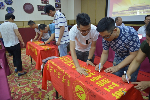20日下午,實(shí)踐營(yíng)舉行了結(jié)班儀式。井岡山革命傳統(tǒng)教育學(xué)院院長(zhǎng)范宜來(lái)出席并致辭。校黨委副書(shū)記雷西合和范宜來(lái)院長(zhǎng)共同為學(xué)員頒發(fā)了結(jié)業(yè)證書(shū)。全體學(xué)員在兩面營(yíng)旗上簽名留念,一面營(yíng)旗回贈(zèng)給井岡山革命傳統(tǒng)教育學(xué)院,一面營(yíng)旗帶回學(xué)校檔案館珍藏。