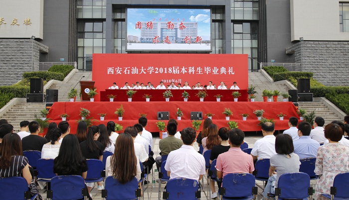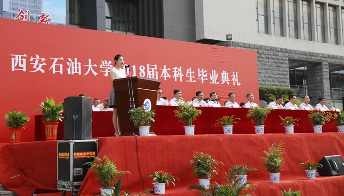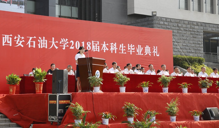 副校長(zhǎng)陳軍斌宣讀了《西安石油大學(xué)關(guān)于2018屆本科生準(zhǔn)予畢業(yè)、頒發(fā)畢業(yè)證和授予學(xué)士學(xué)位的決定》,校紀(jì)委書記李延平宣讀了《西安石油大學(xué)關(guān)于表彰2018屆優(yōu)秀畢業(yè)生的決定》,校黨委副書記雷西合宣讀了《西安石油大學(xué)校友總會(huì)關(guān)于聘任2018屆校友年級(jí)理事的決定》。與會(huì)校領(lǐng)導(dǎo)為優(yōu)秀畢業(yè)生代表頒發(fā)了榮譽(yù)證書,為年級(jí)理事代表頒發(fā)了聘任證書和紀(jì)念品,并向全體畢業(yè)生贈(zèng)送了紀(jì)念品。