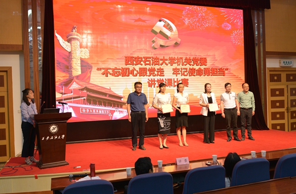 為深入學習宣傳貫徹黨的十九大精神,認真學習領(lǐng)會習近平新時代中國特色社會主義思想,根據(jù)組織部工作安排,機關(guān)黨委于5月25日下午在雁塔校區(qū)學術(shù)報告廳舉辦“不忘初心跟黨走,牢記使命勇?lián)敗敝v黨課比賽。學校部分院(系)級單位黨組織負責人擔任比賽評委,機關(guān)黨委全體黨員參加了活動。