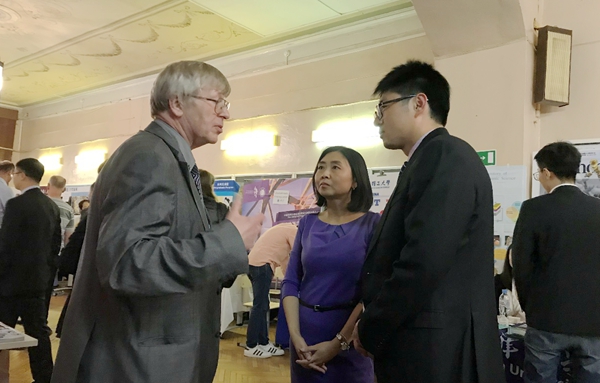 為做好此次參展工作,我校代表團認真準備了招生簡章等宣介資料,積極開展學校宣介工作,精心布展。本屆教育展期間恰逢莫斯科年度HSK考試在莫斯科國立語言大學舉行,在當天的HSK考試結束后,有1300余名當?shù)乜忌凹议L紛紛前往會展現(xiàn)場進行留學中國的相關事宜咨詢。我校宣介人員緊密結合學校的特色和優(yōu)勢,大力推廣學校國際學生招生,積極拓展對俄國際合作空間,吸引了眾多參展俄羅斯學生和家長的濃厚興趣,取得了良好的宣介效果。