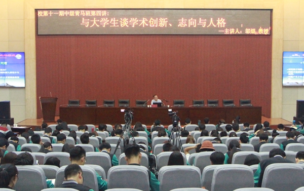 5月15日晚,由校團(tuán)委舉辦的“第十一期中級青年馬克思主義者干部培訓(xùn)班”第四講在鄠邑校區(qū)弘石學(xué)術(shù)報告廳舉辦。應(yīng)我校黨委宣傳部邀請,西安交通大學(xué)國際信息哲學(xué)研究中心主任、人文社會科學(xué)學(xué)院二級教授、博士生導(dǎo)師鄔焜教授作了題為《與大學(xué)生談學(xué)術(shù)創(chuàng)新、志向與人格》的講座,中級青年馬克思主義者干部培訓(xùn)班學(xué)員300余人參加了講座。
