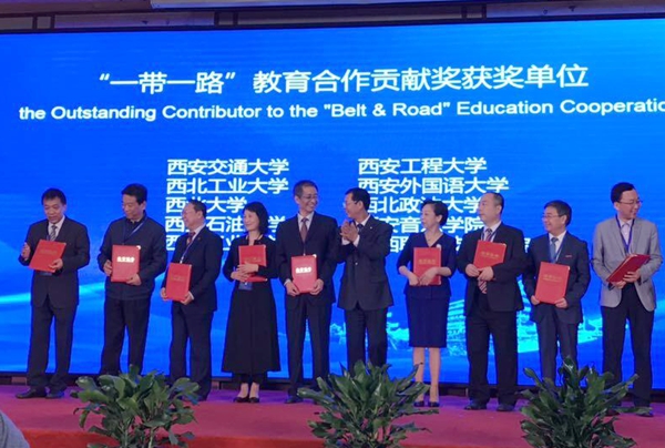 開幕式由陜西省教育廳副廳長趙昶葆主持,省教育廳廳長王建利作主旨發(fā)言。陜西省政府副秘書長高陽宣布2018絲綢之路教育合作交流會開幕。大會為10個機構(gòu)和9位外籍人士頒發(fā)了“一帶一路”教育合作貢獻獎,我校及我校俄語外教揚古托娃?麗達?洛別爾托夫娜雙雙獲獎。
