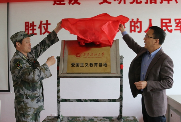 簽約儀式上,校黨委副書記雷西合與32144部隊副政委徐洪剛代表雙方簽署《共建共育協(xié)議書》,并共同為“西安石油大學愛國主義教育基地”揭牌。雙方一致同意將通過愛國主義教育基地等多種共建形式,全面開展共建共育工作,進一步做好大學生革命傳統(tǒng)教育和愛國主義、革命英雄主義教育和部隊官兵文化知識、專業(yè)技能培訓工作,真正實現(xiàn)資源共享、優(yōu)勢互補。
