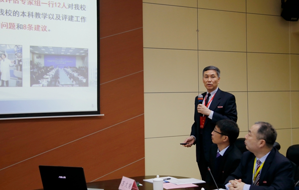 校長屈展代表學(xué)校作本科教學(xué)工作審核評估整改檢查匯報。他從學(xué)校審核評估整改工作的組織和落實、做法與成效以及本科教學(xué)工作下一步的努力方向三個方面,向?qū)<医M作了我校具體整改工作完成和進(jìn)展情況匯報。他說,一年來,學(xué)校以審核評估整改工作為抓手,在各方面開展了大量具體細(xì)致的工作,本科教學(xué)工作取得了較大的進(jìn)步和成效。今后,學(xué)校將進(jìn)一步加強(qiáng)內(nèi)涵建設(shè),深化教學(xué)改革,提高育人質(zhì)量,以扎實的整改成效推動學(xué)校本科教學(xué)工作和人才培養(yǎng)水平再上新的臺階。