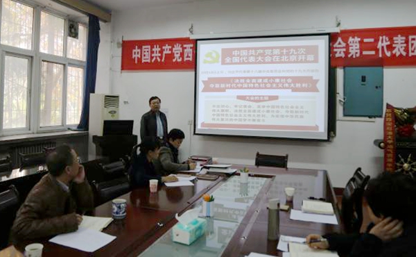 三是組織師生黨員觀看中國共產(chǎn)黨第十九次全國代表大會(huì)開幕會(huì)。結(jié)合學(xué)院工作實(shí)際,學(xué)院黨委下發(fā)通知,要求全體教工黨員自行觀看中國共產(chǎn)黨第十九次全國代表大會(huì)開幕會(huì),并于2017年10月18日上午組織全體學(xué)工干部以及部分學(xué)生黨員、入黨積極分子等在鄠邑校區(qū)地科樓309教室一同觀看了中國共產(chǎn)黨第十九次全國代表大會(huì)開幕會(huì)現(xiàn)場直播,認(rèn)真聽取了習(xí)近平總書記代表十八屆中央委員會(huì)所作的工作報(bào)告。會(huì)后,大家紛紛表示,習(xí)近平總書記的工作報(bào)告振奮人心、催人奮進(jìn),大家要進(jìn)一步加強(qiáng)理論學(xué)習(xí),積極領(lǐng)會(huì)報(bào)告精神。