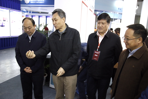 開幕式后,董小龍書記、王建利廳長在屈展校長、李華副校長的陪同下參觀了我校展區(qū),并對(duì)學(xué)校近年來的科技創(chuàng)新及布展情況表示贊賞,希望學(xué)校繼續(xù)推動(dòng)產(chǎn)學(xué)研用融合,為科技成果轉(zhuǎn)移轉(zhuǎn)化奠定良好基礎(chǔ),為陜西追趕超越發(fā)展做出更大貢獻(xiàn)。