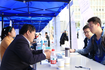 4月21日,我校2017屆畢業(yè)生第四場(chǎng)綜合招聘會(huì)在新校區(qū)圖書(shū)館南廣場(chǎng)舉行。中化石油浙江有限公司、中石化河南油建工程有限公司、陜西東嶺集團(tuán)、中石化第四建設(shè)有限公司等150余家單位、300余名代表參會(huì),我校及兄弟院校畢業(yè)生共2000余人參加了招聘會(huì)。