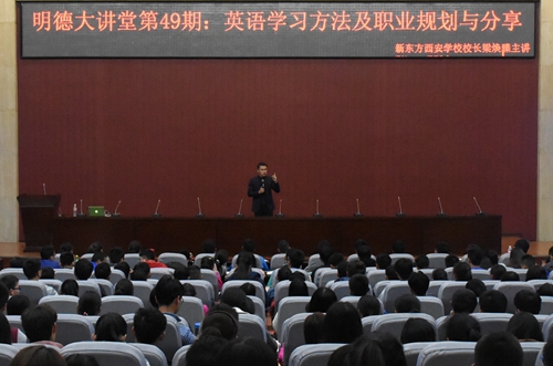 3月28日晚,由校團(tuán)委主辦的第49期明德大講堂之《英語學(xué)習(xí)方法及職業(yè)規(guī)劃與分享》在新校區(qū)圖書館弘石學(xué)術(shù)報告廳舉辦。新東方西安學(xué)校副校長梁煥臻老師擔(dān)任主講,400余名學(xué)生聽取了講座。